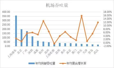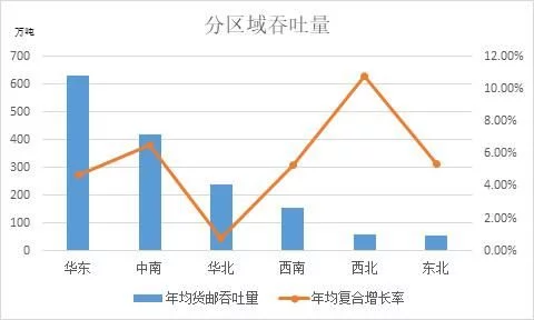 2.年均貨郵吞吐量與年均復合增長率